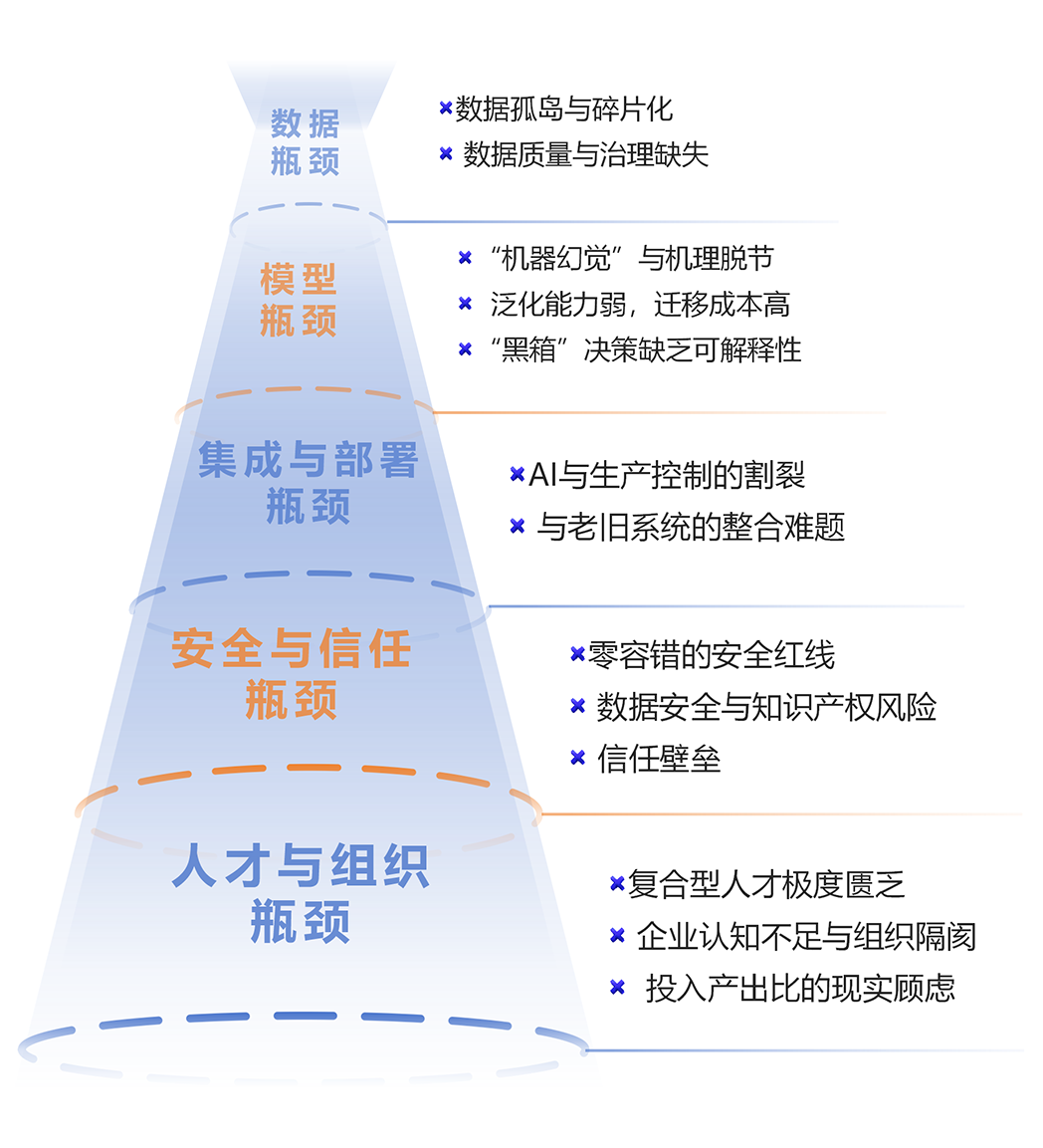 针对工业AI规模化落地难题,温宜明总裁直言,其瓶颈并非单一的技术难题,而是一个交织着数据、模型、系统、安全、人才与组织的多维度挑战,核心在于实现“可靠、可信、可解释”的工业智能,而非简单堆砌通用AI技术。